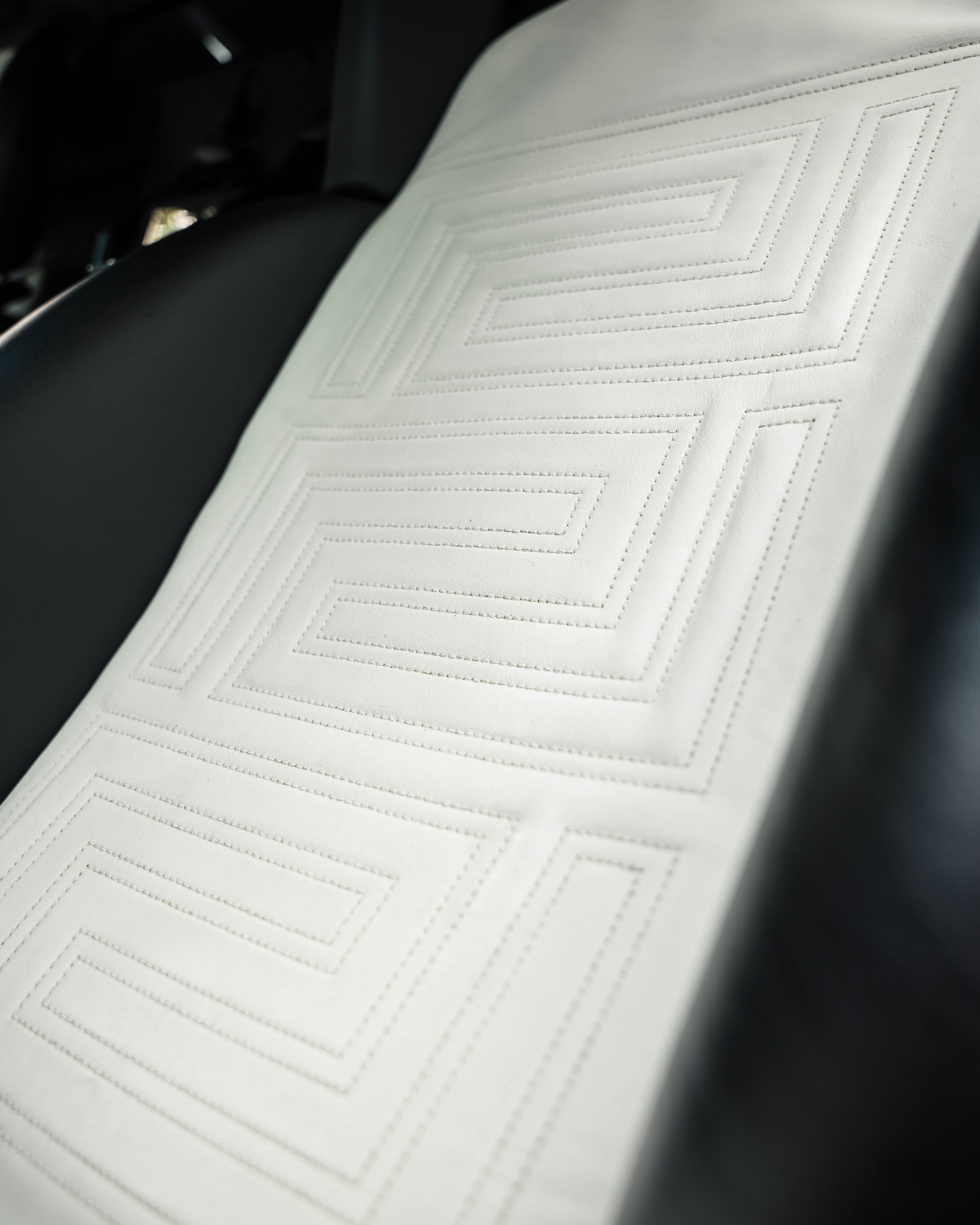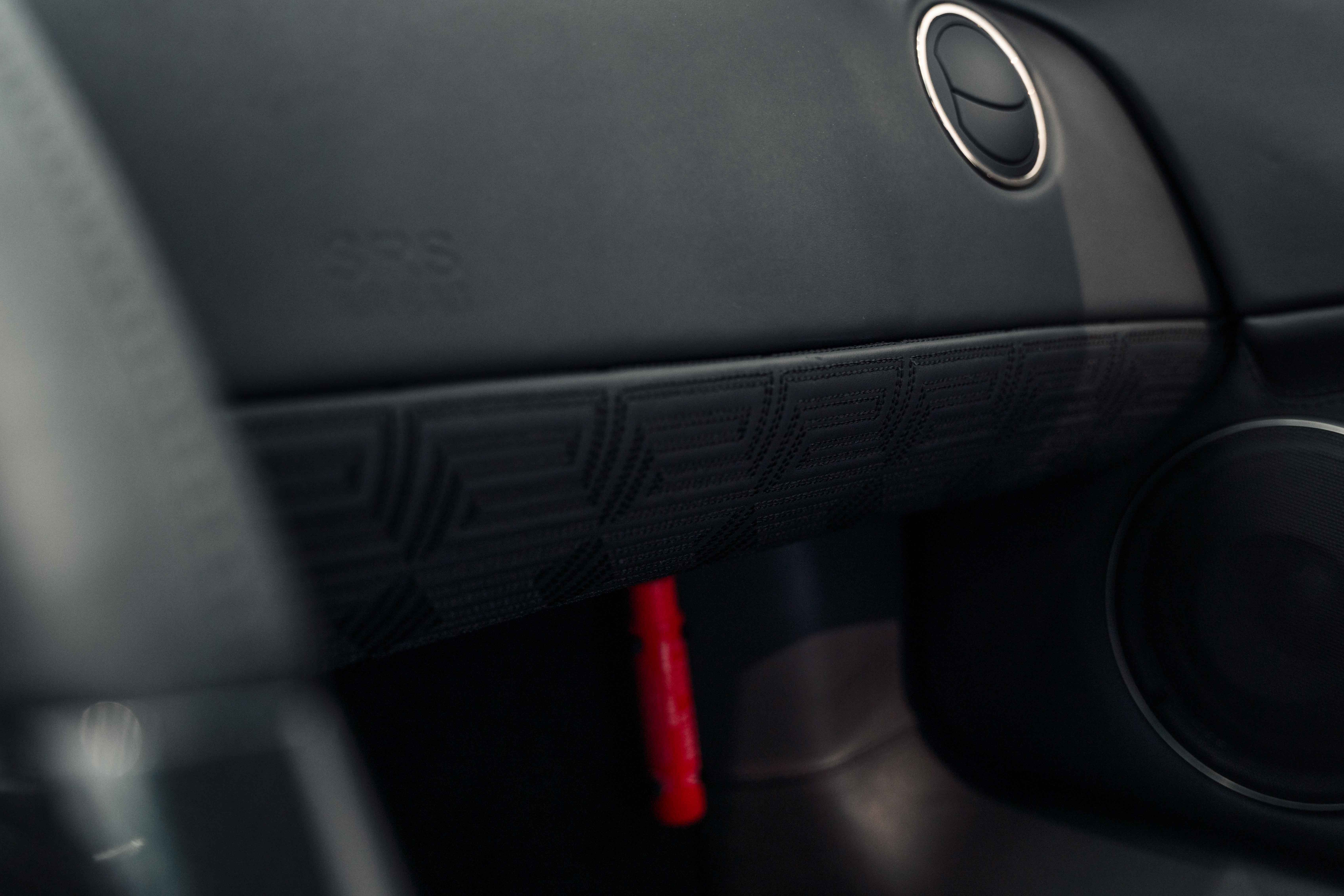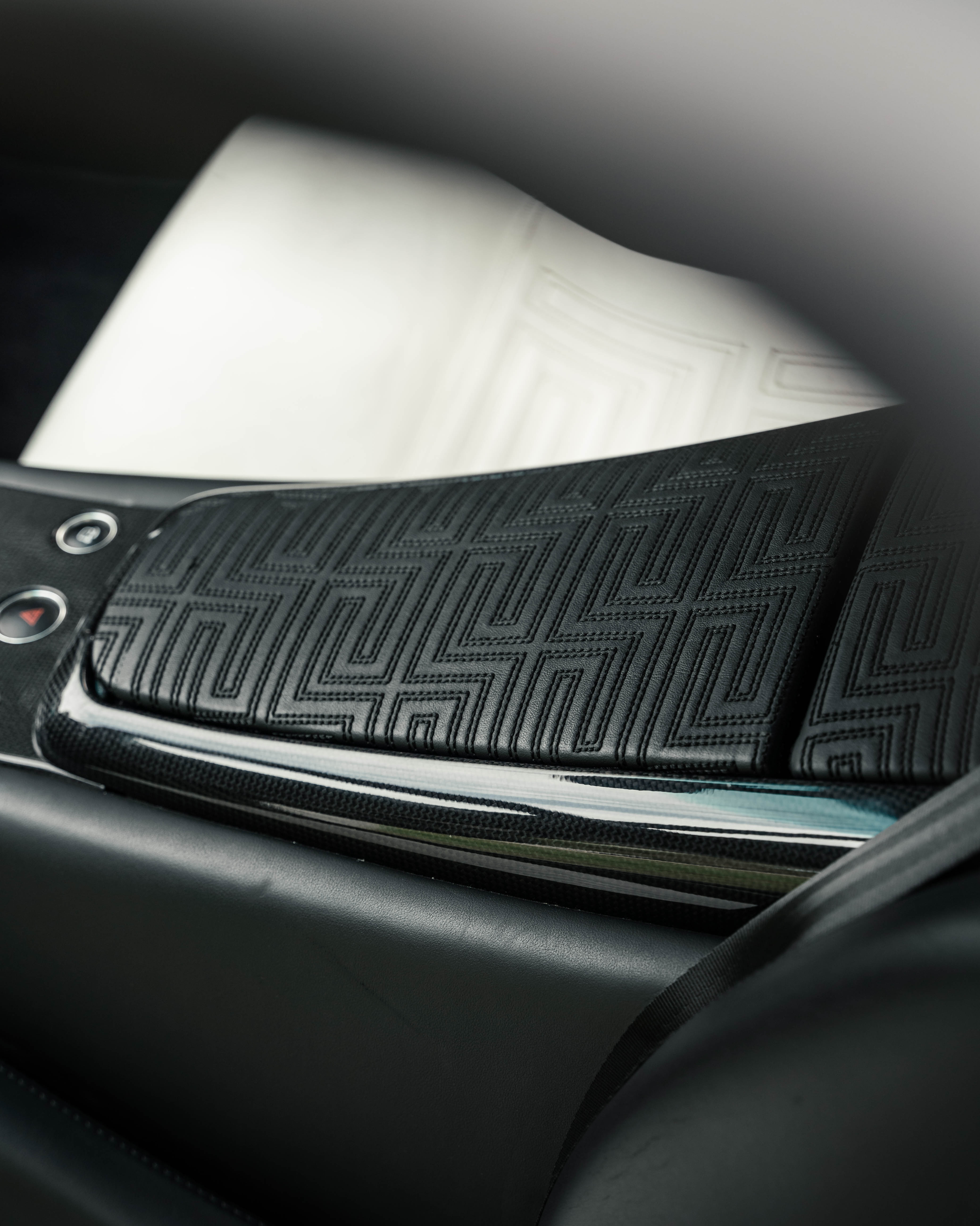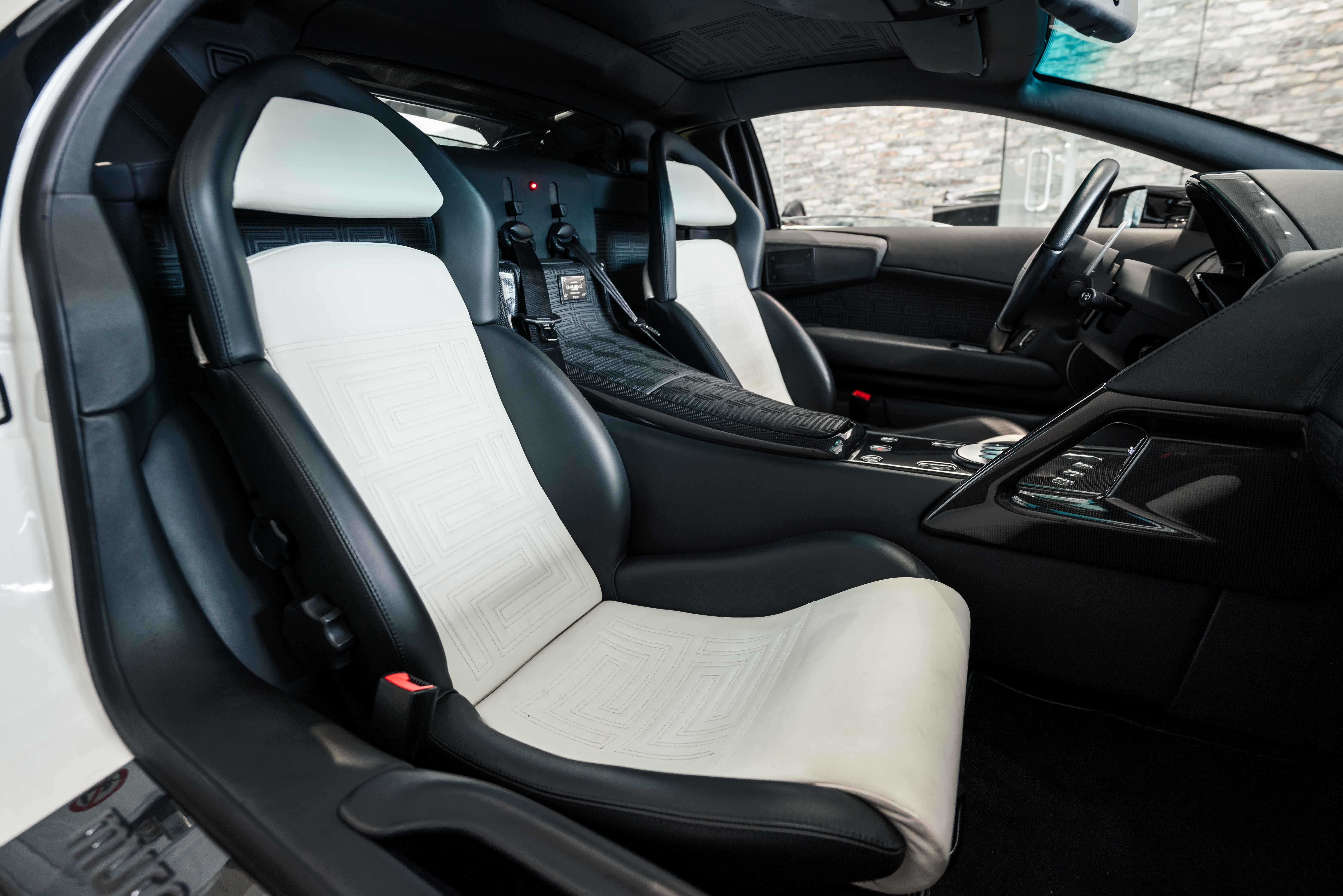 Custom leather seats with embroidered Versace "Meander" (Greek Key) pattern
