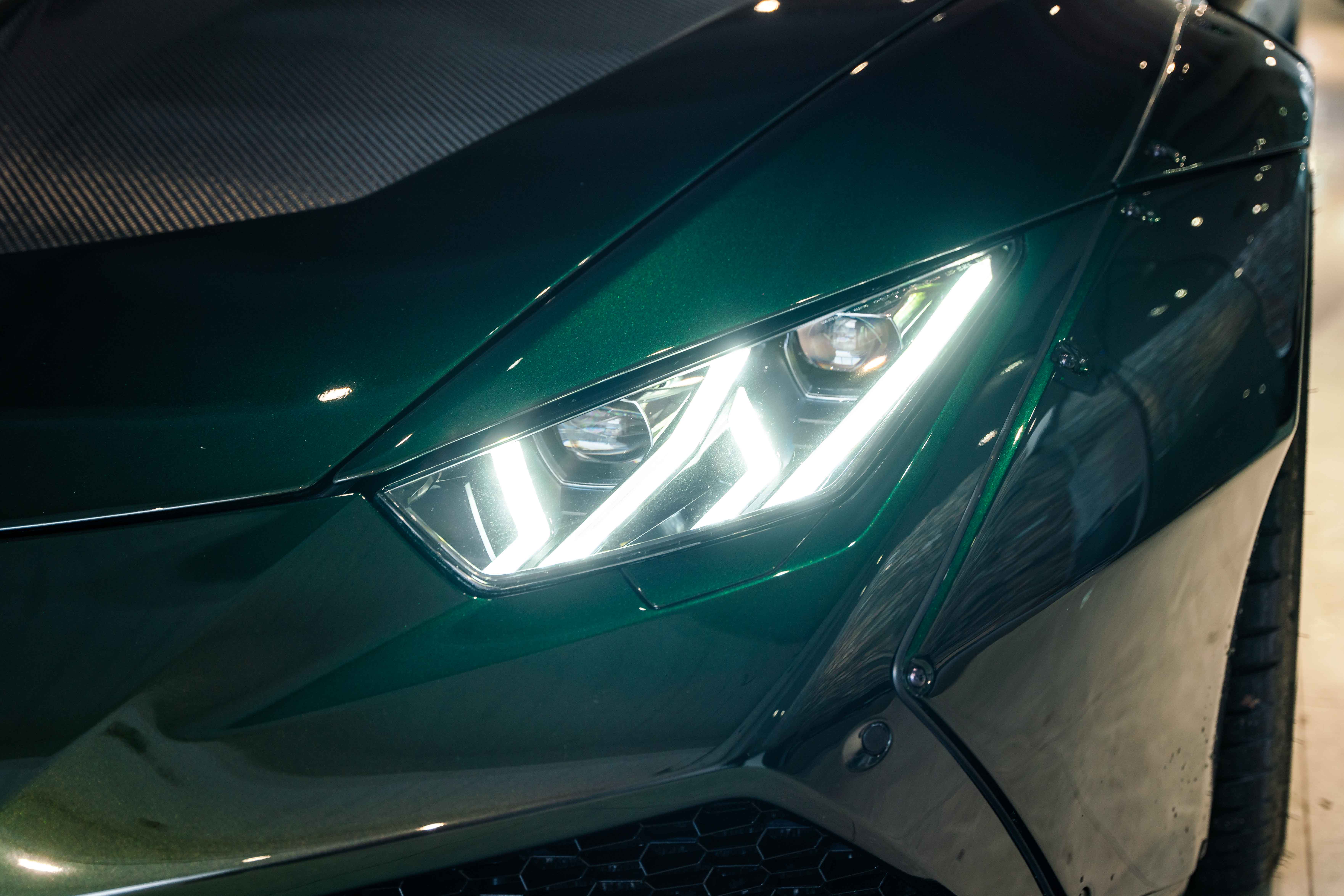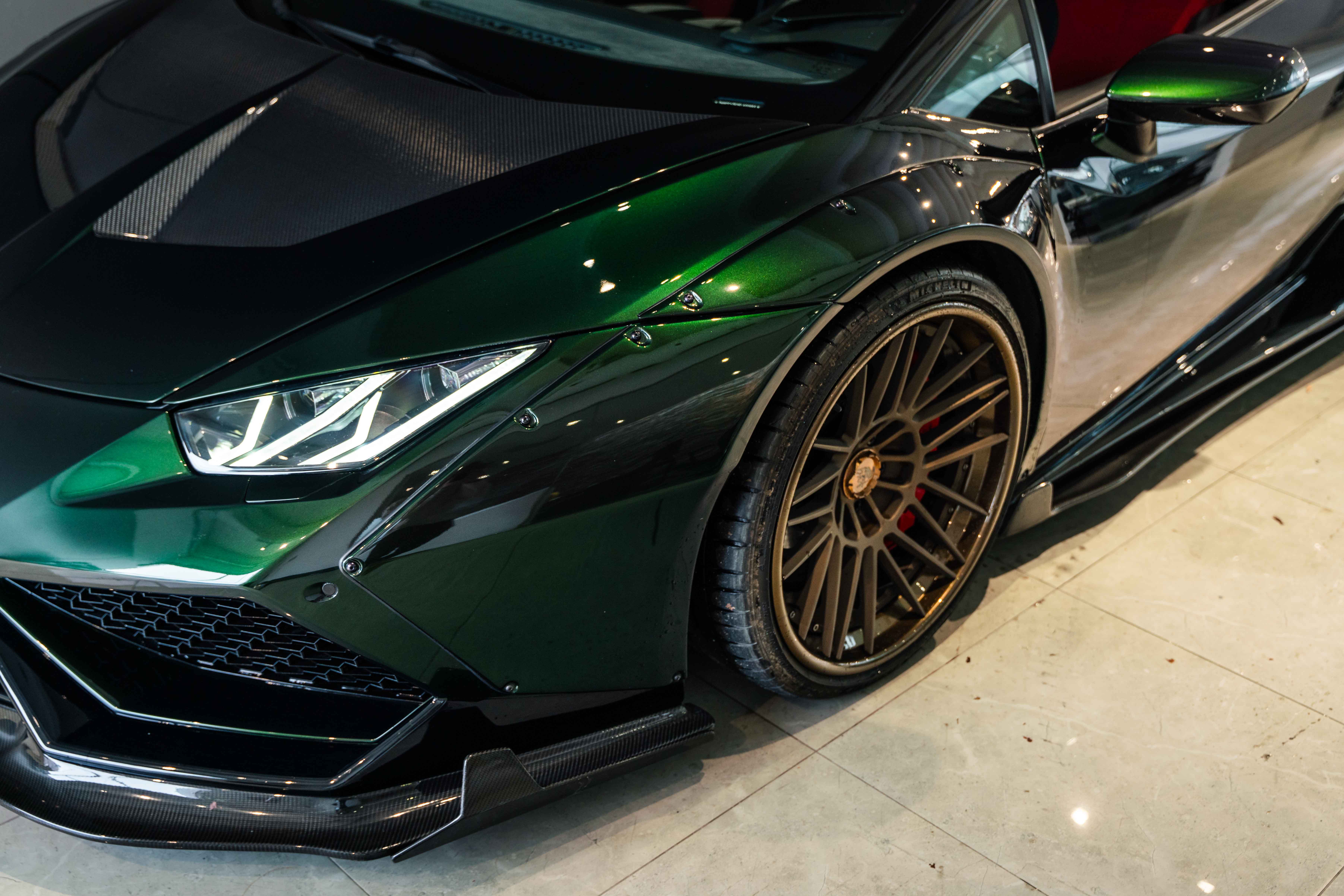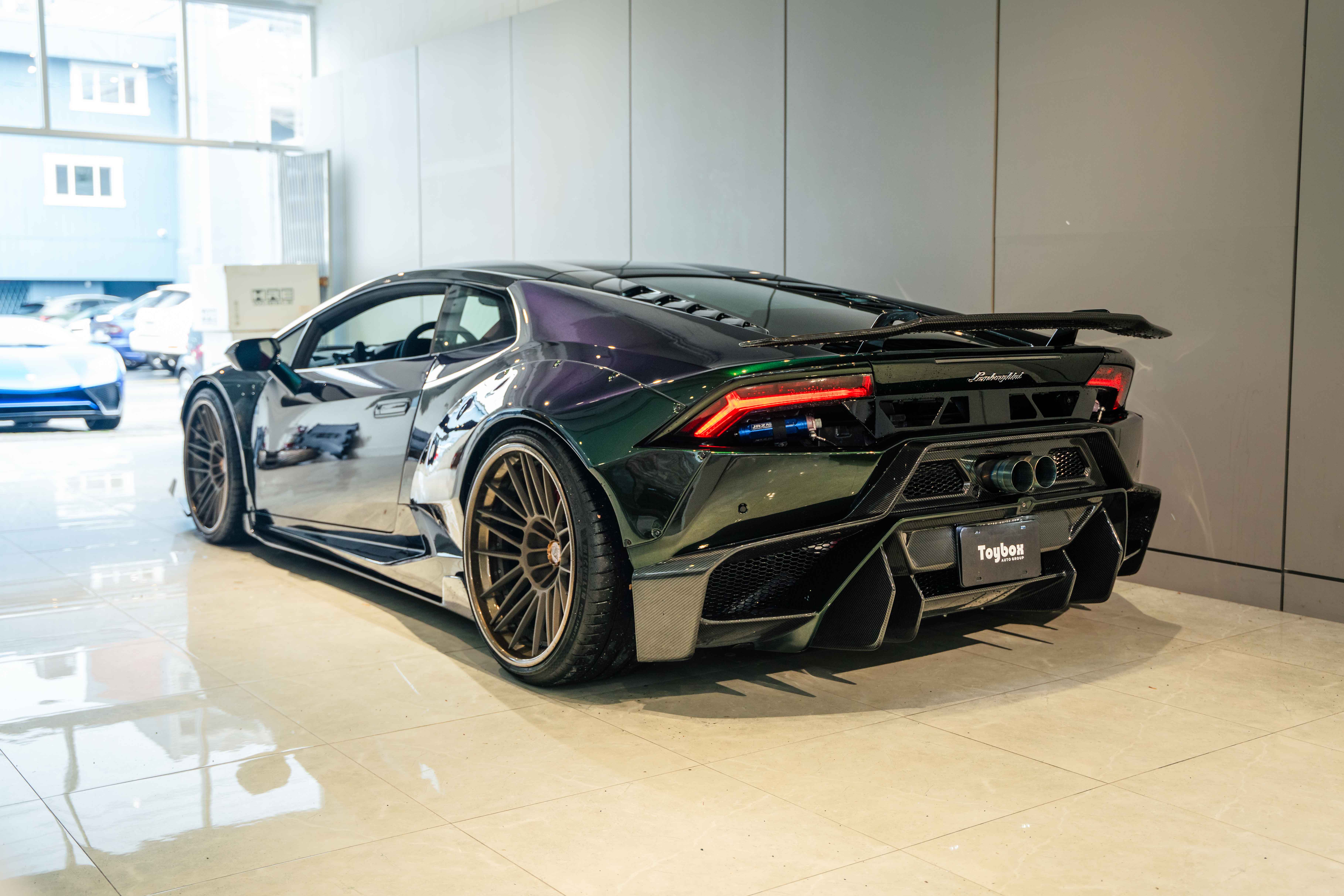 Custom 1/1 Paint Job – Chameleon Green, a mesmerizing color shift from deep green to vibrant purple, making this Huracán truly unique