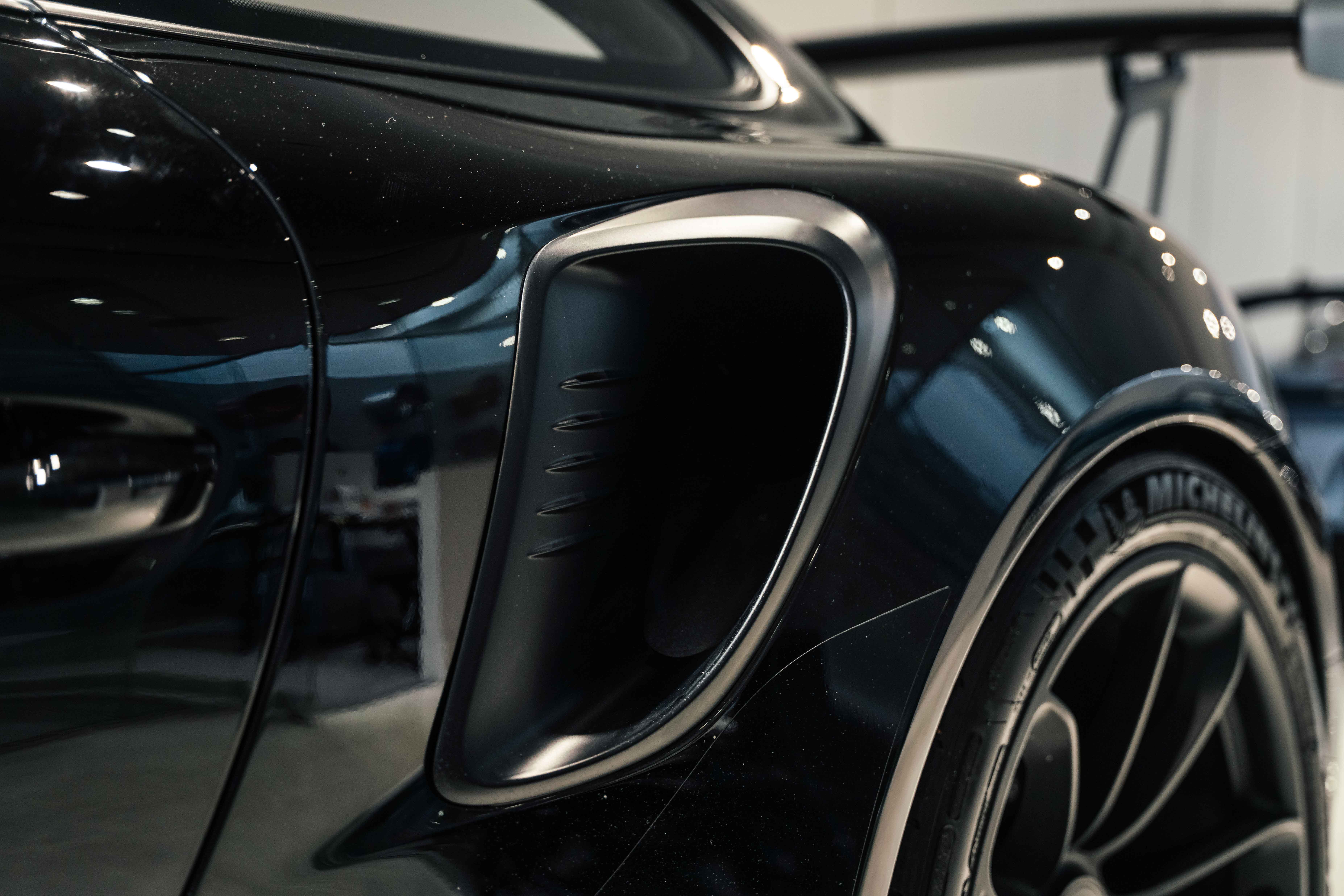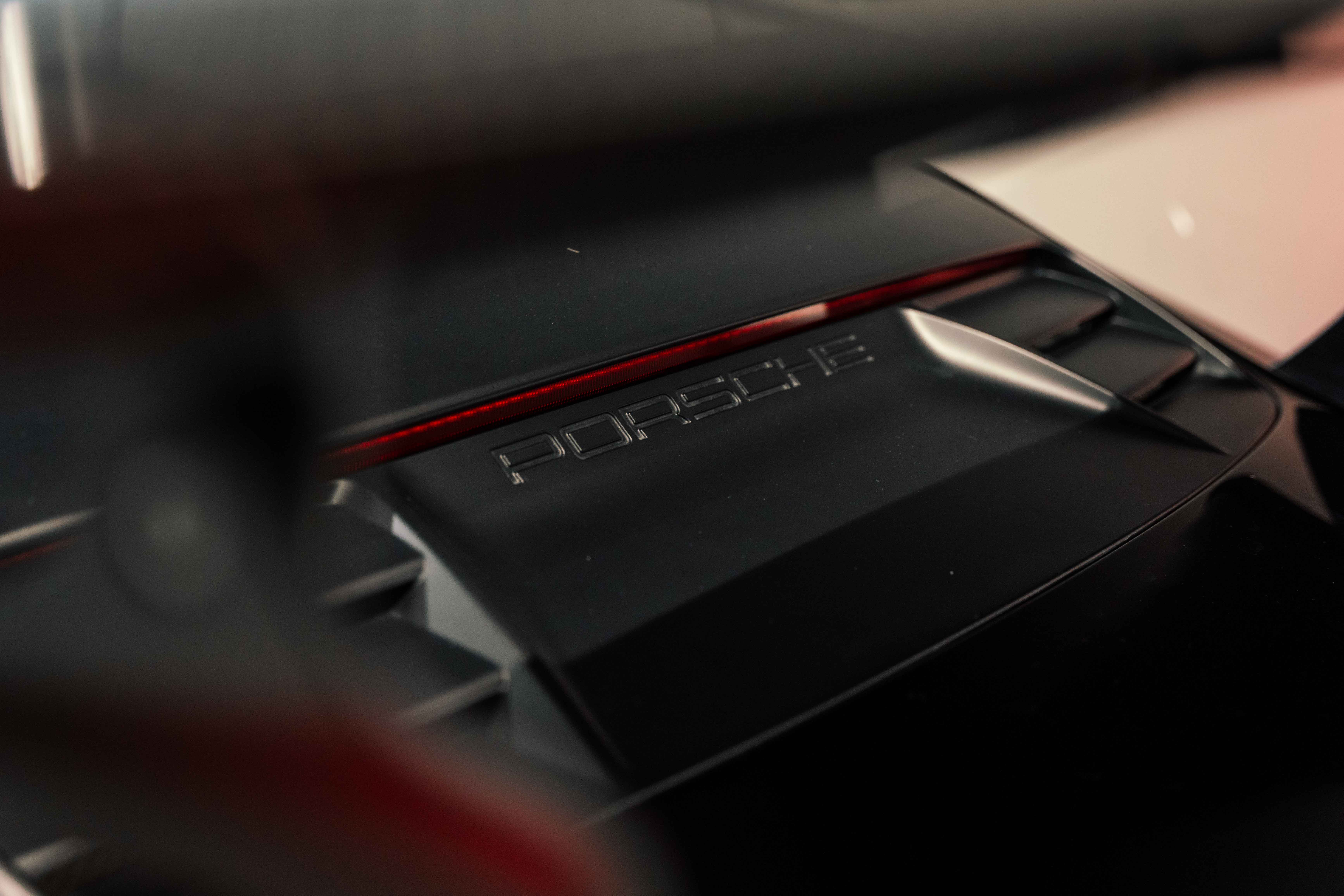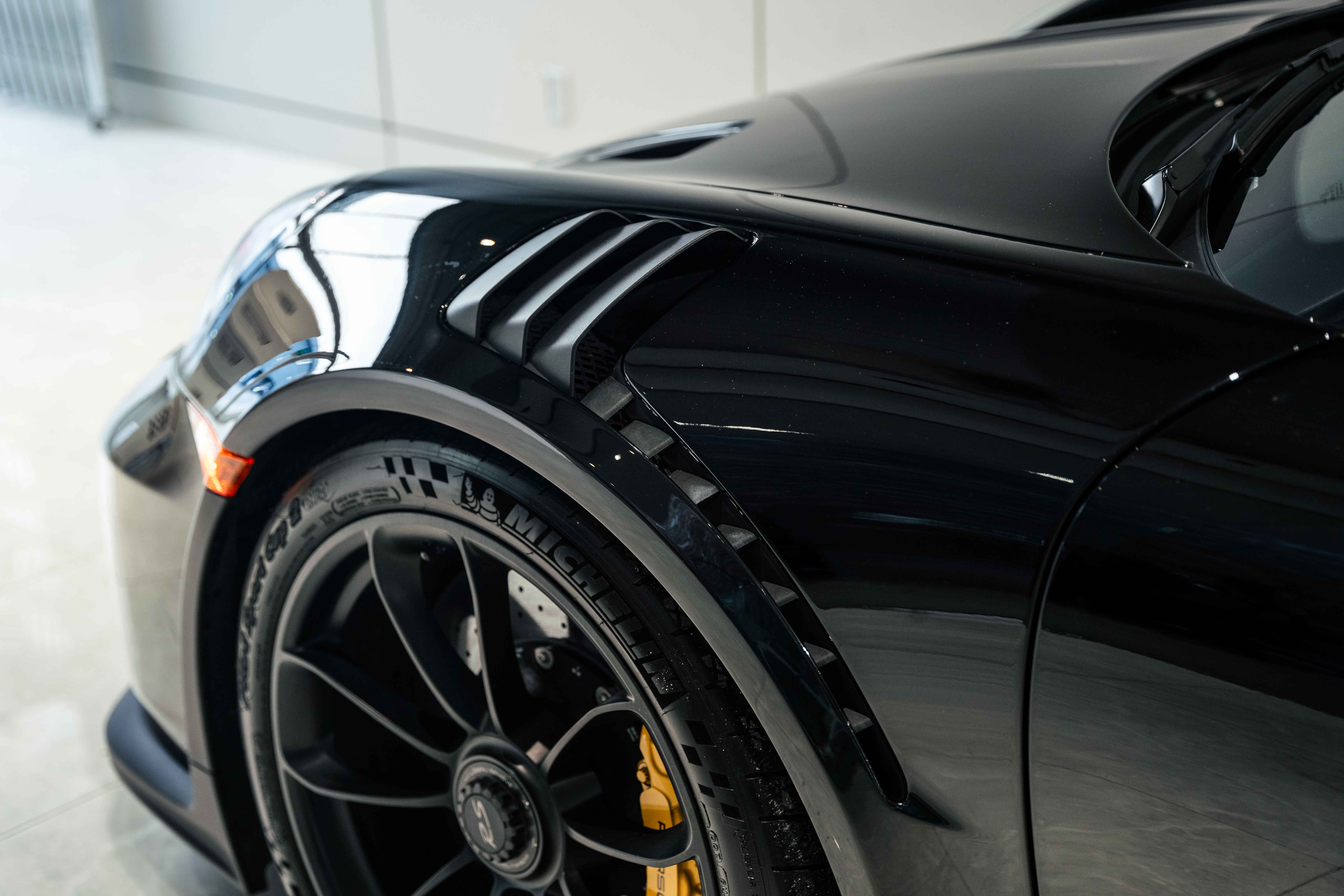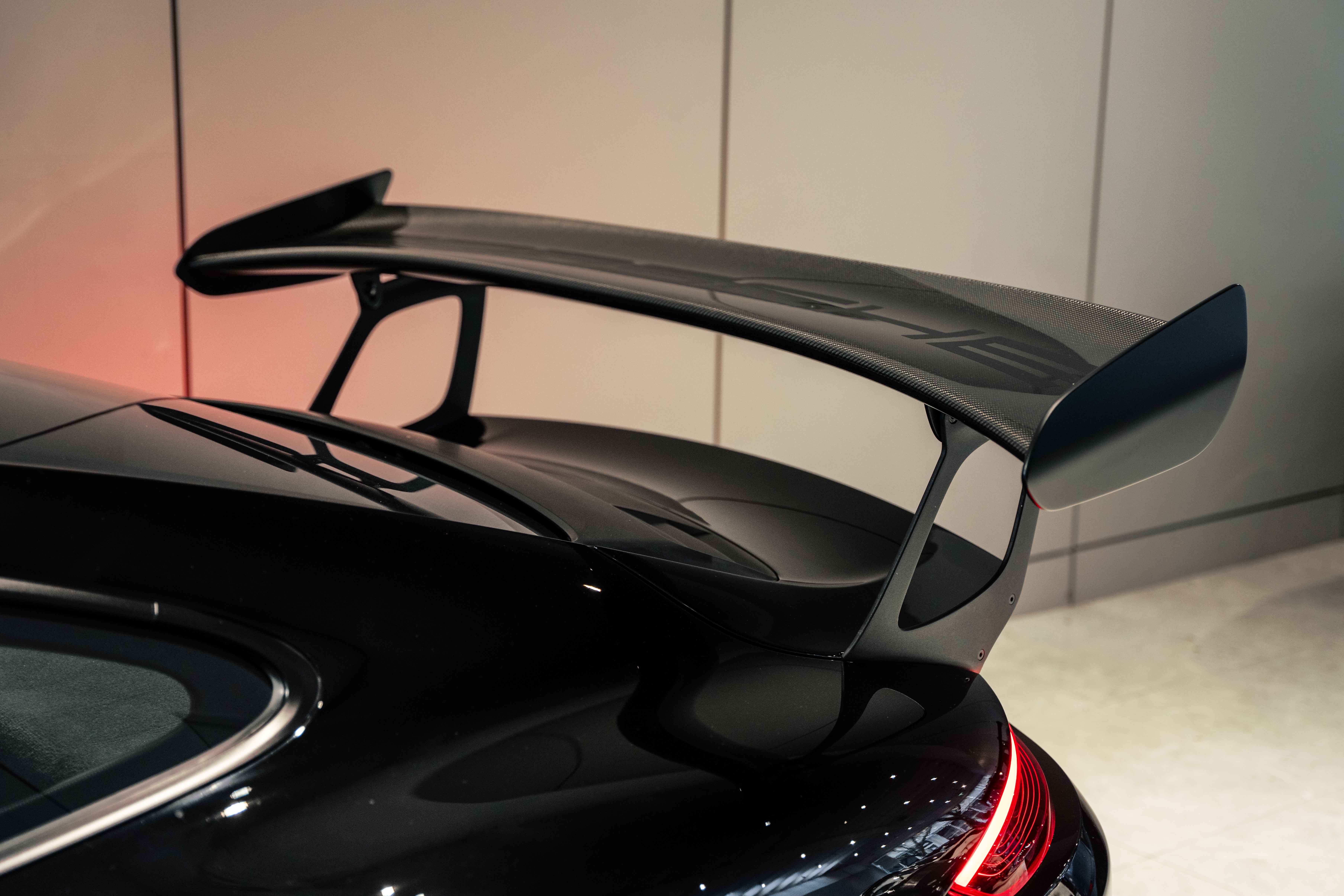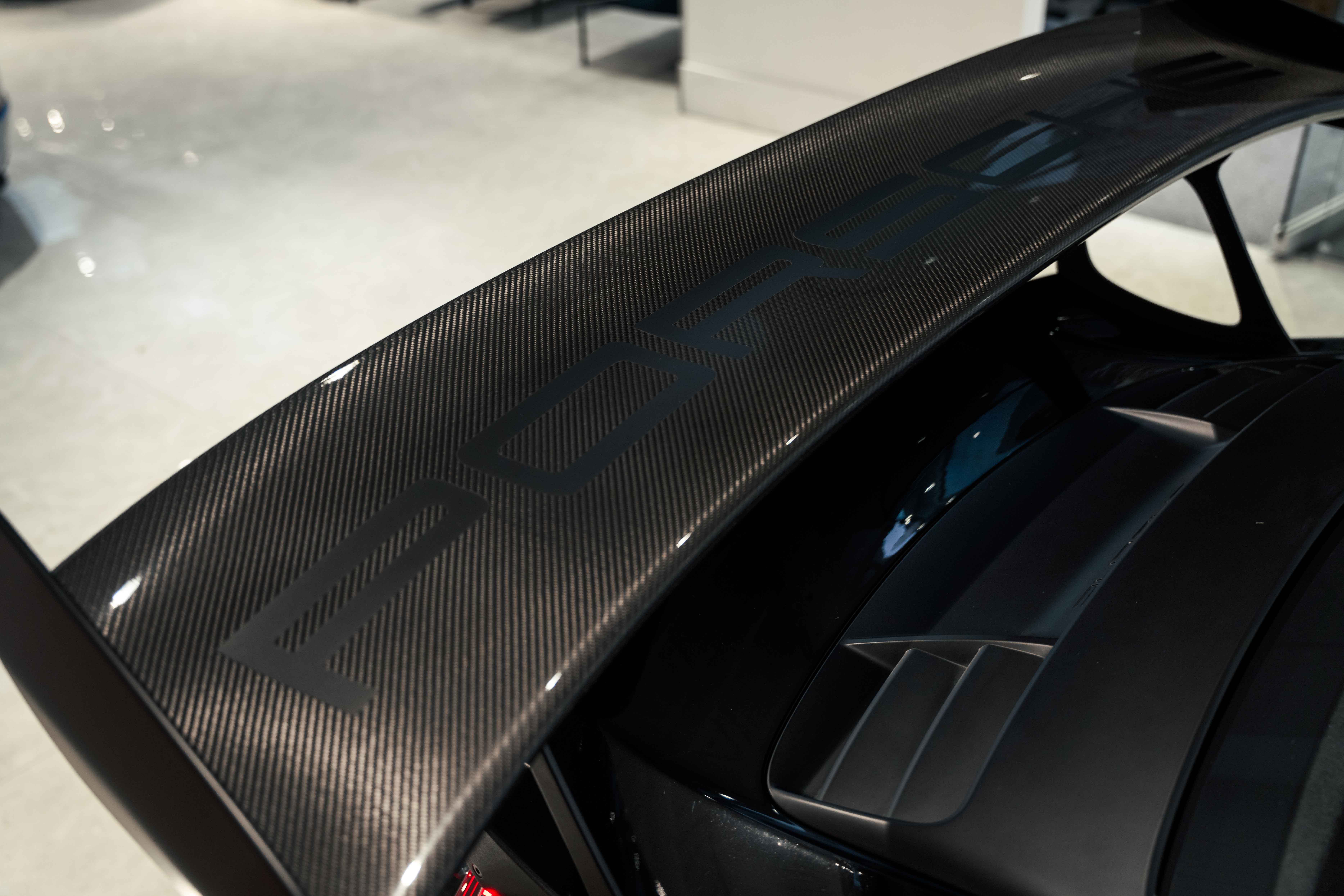 Finished in Black, this GT3 RS delivers an aggressive, understated presence that lets its capabilities speak for themselves. The Weissach Package adds extensive carbon fiber components—including the carbon front lid, carbon roof, and carbon anti-roll bars—helping reduce weight and sharpen handling. Satin Black center-lock wheels and LED headlights in Black with PDLS complete the purposeful exterior.