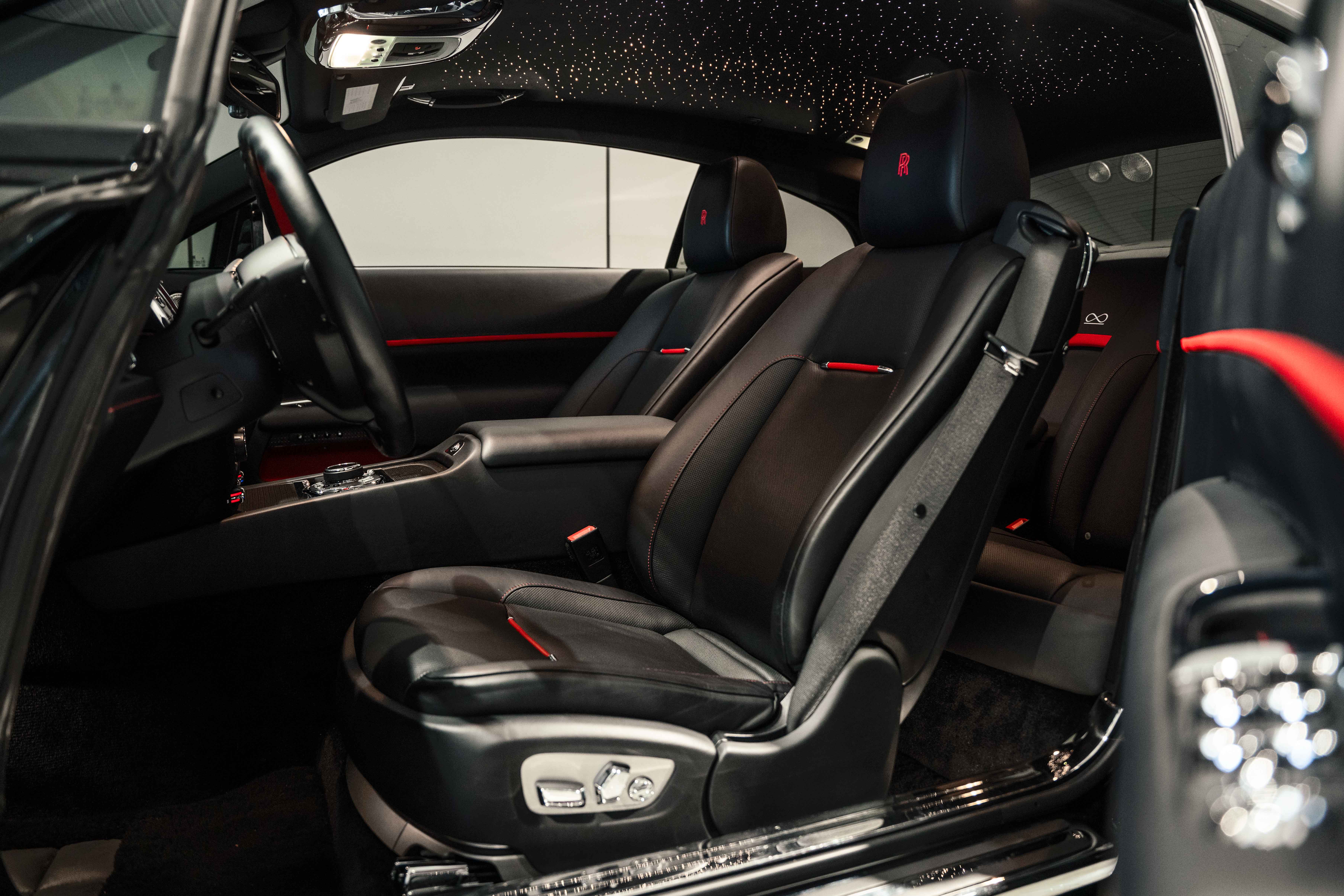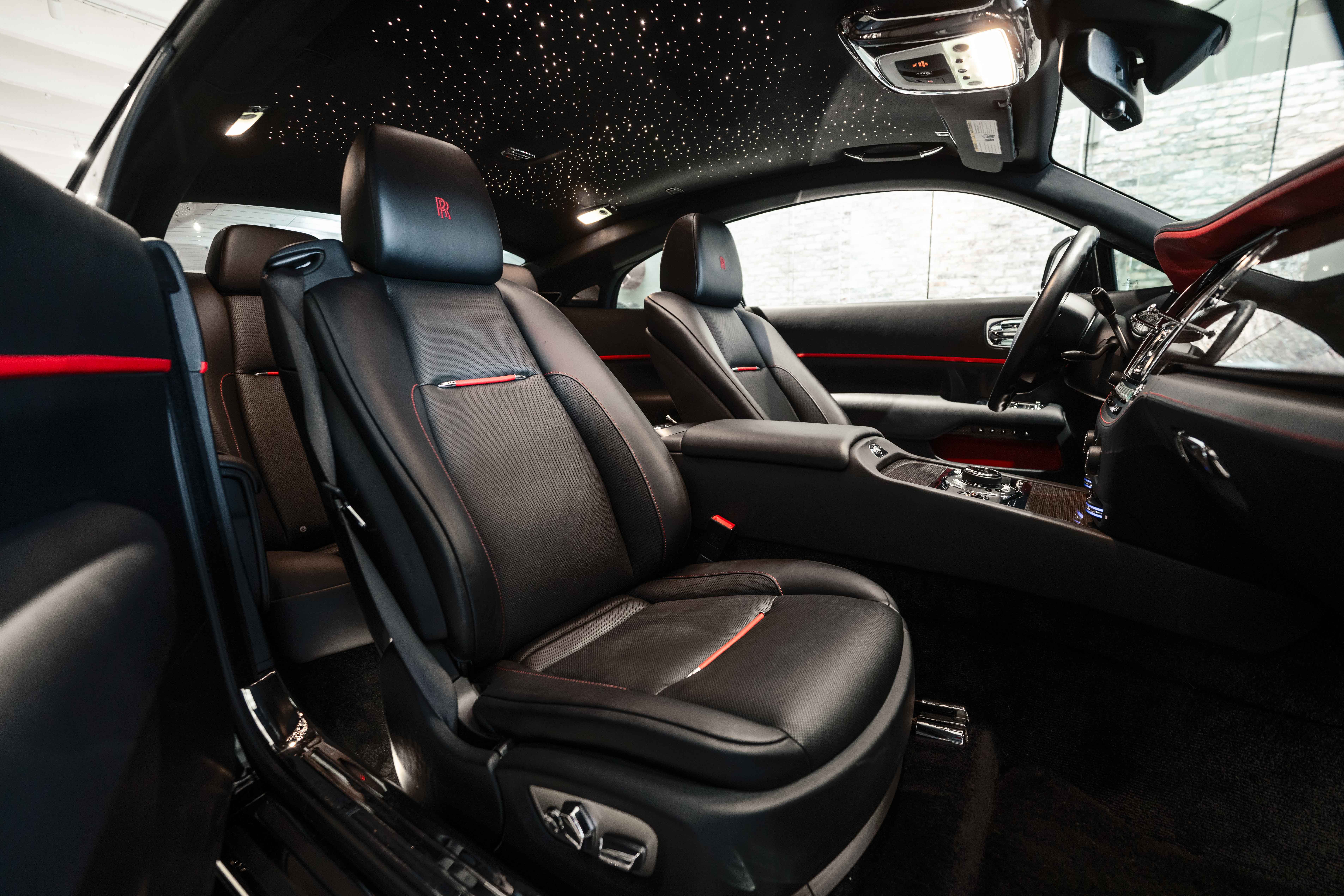 True to its Black Badge character, this Wraith is equipped with a sport exhaust system, subtly enhancing the presence of its formidable V12 powertrain. Power delivery remains smooth and commanding, delivering the signature Rolls-Royce “wafting” experience with an added edge of attitude.