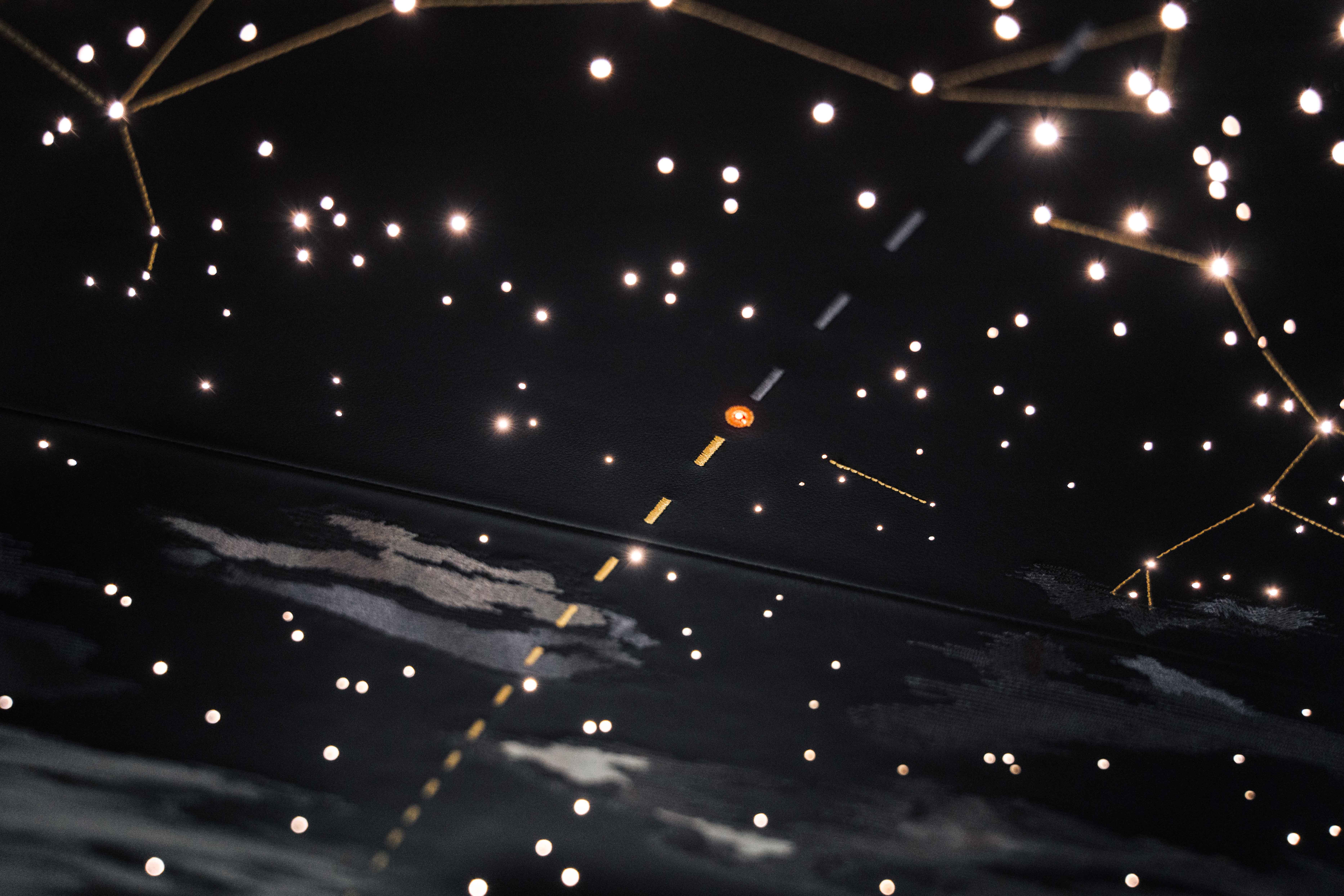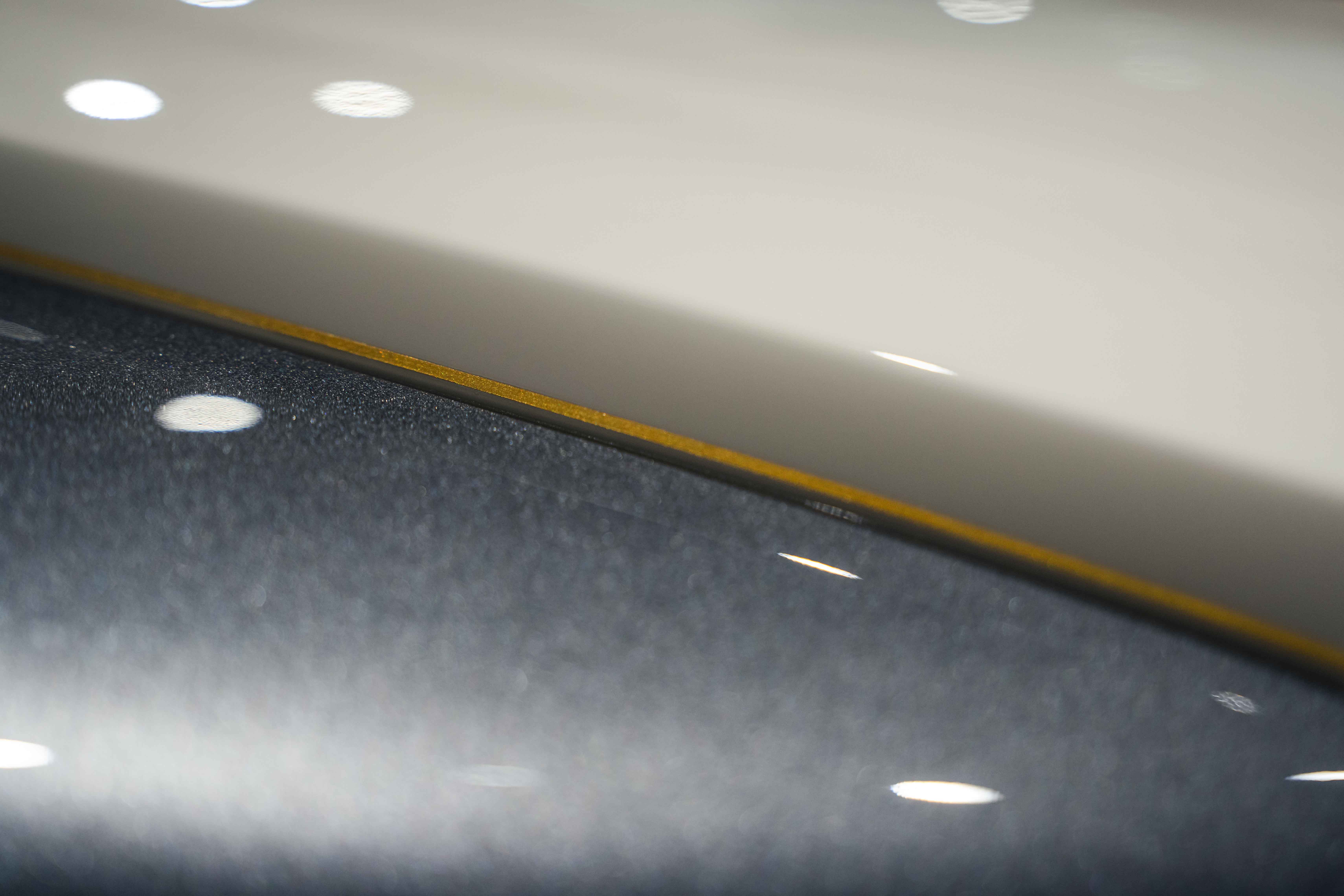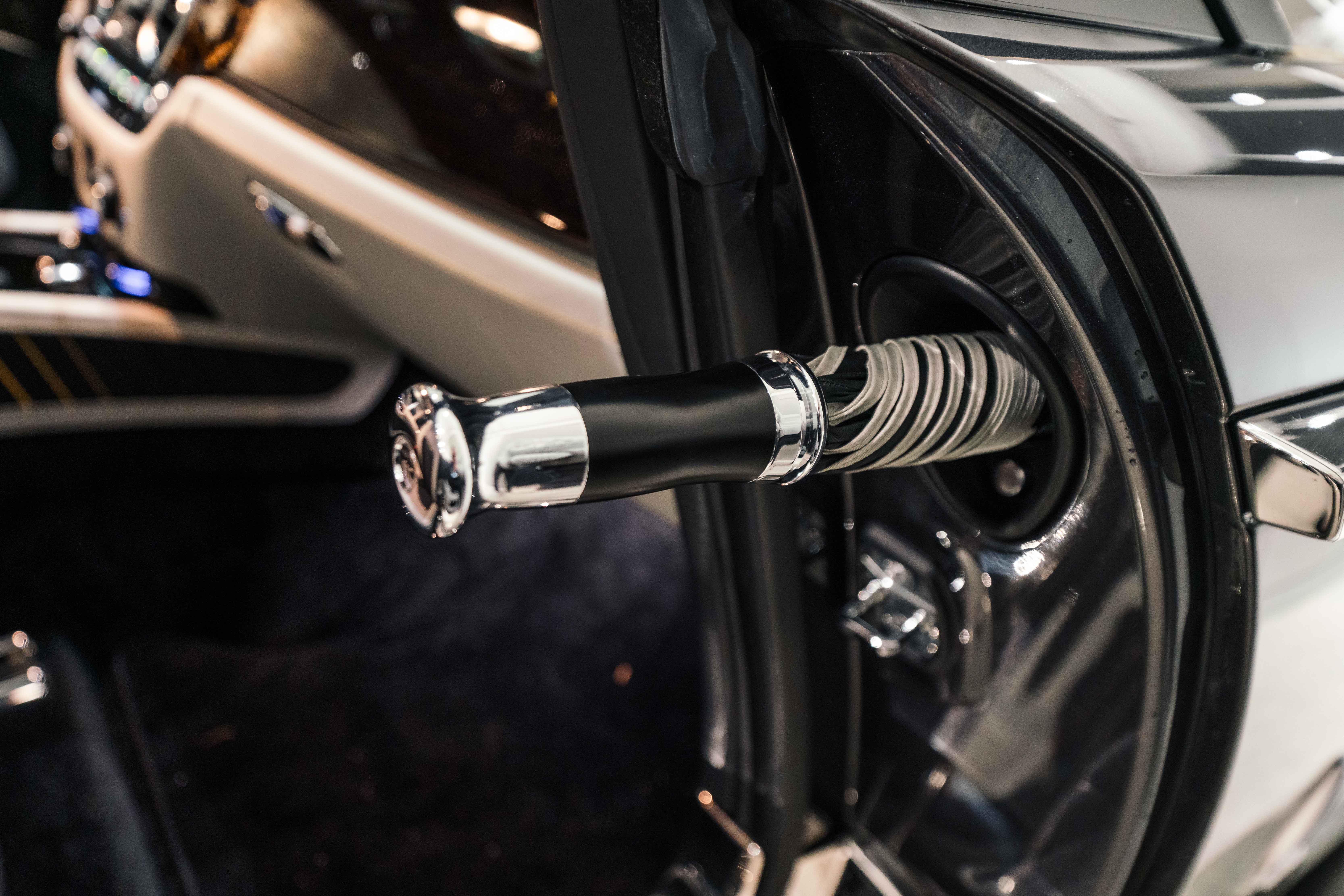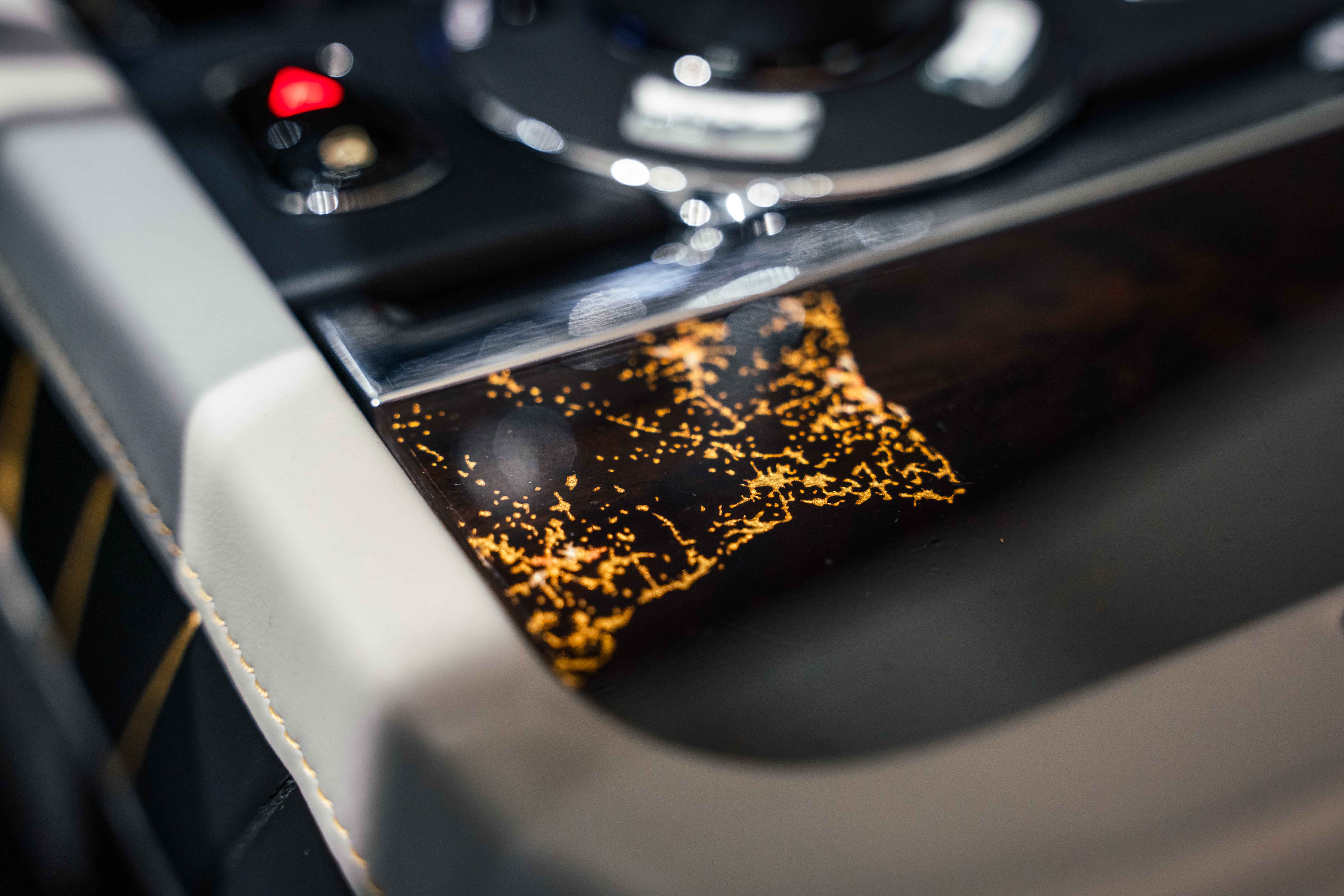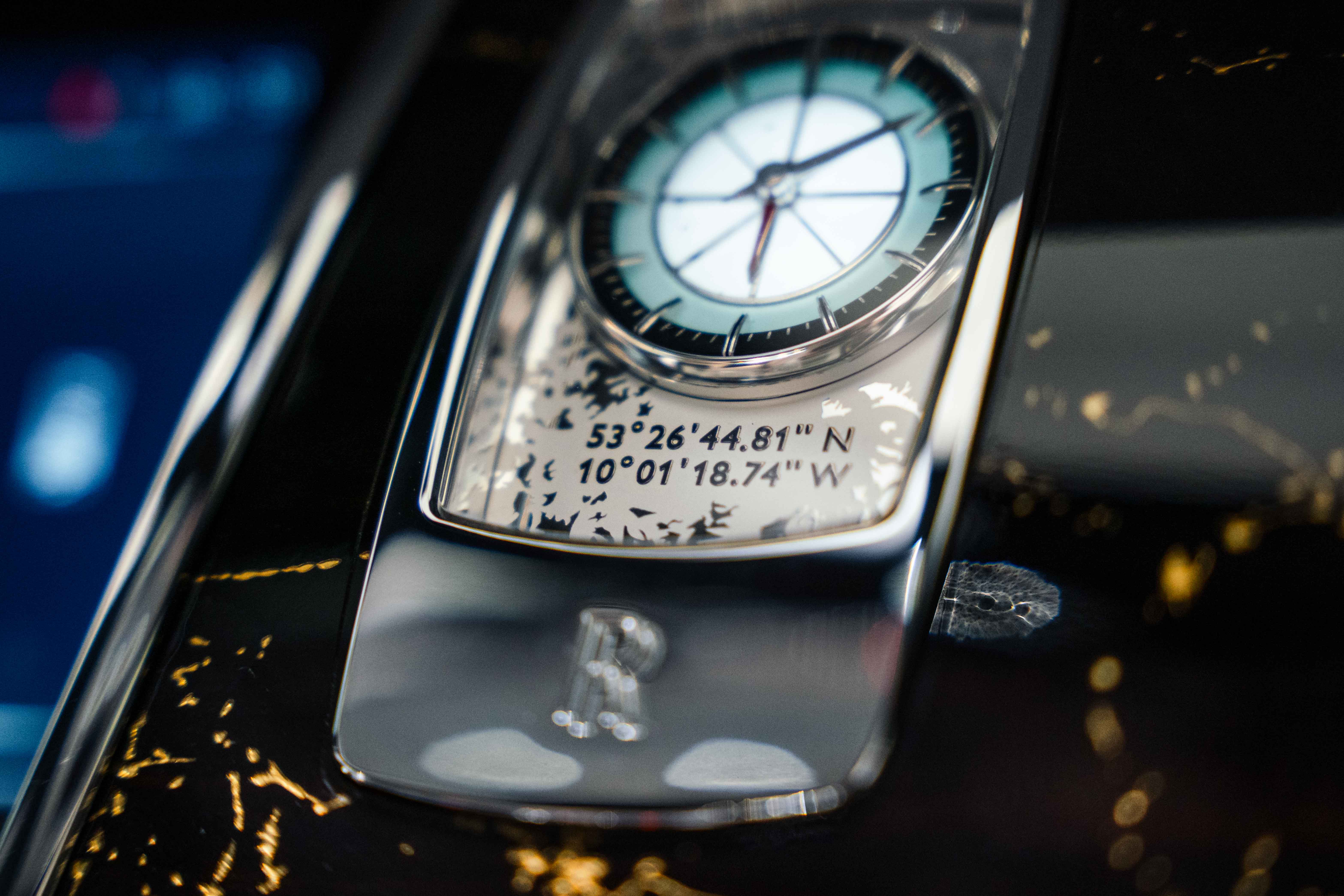Inside, the cabin is a masterclass in storytelling through craftsmanship. The illuminated fascia artwork depicts the exact transatlantic flight path from Newfoundland to Ireland, glowing softly across the dashboard as a reminder of human ambition and technical excellence. The Starlight Headliner features a unique celestial configuration recreating the night sky as it appeared during the historic flight—an extraordinary detail that transforms the interior into a moving time capsule.