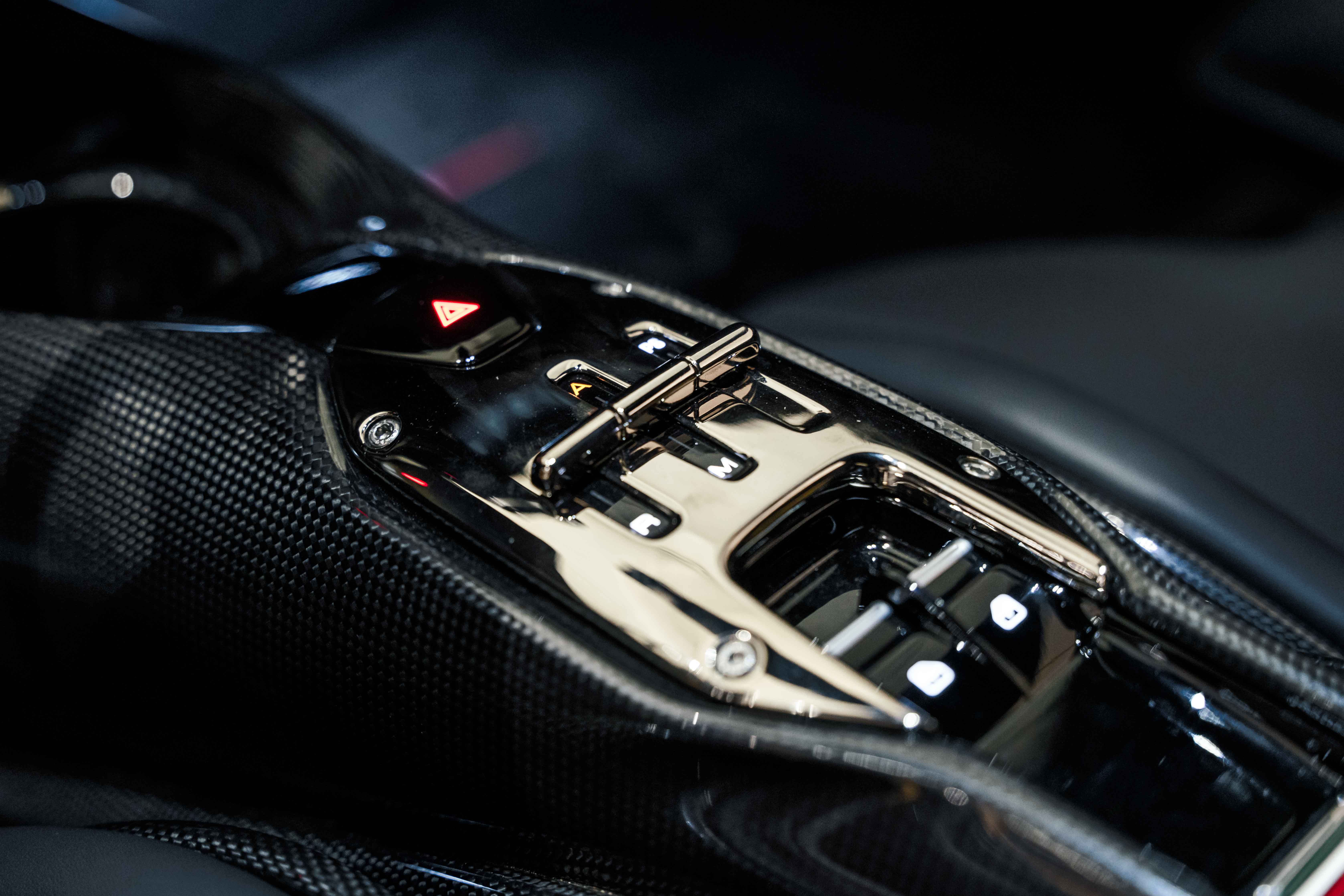 Extensively optioned, this SF90 is equipped with both the Fiorano Package and Extended Fiorano Package, elevating its dynamic capability with motorsport-focused suspension tuning and weight-saving components. Carbon fiber is featured throughout the exterior, including the front spoiler, side air splitters, rear diffuser, underdoor covers, engine covers, and engine manifold, reinforcing the car’s performance-first philosophy while enhancing visual drama. Carbon fibre wheels, paired with glossy black brake calipers and titanium wheel stud bolts, complete an unmistakably track-inspired stance.