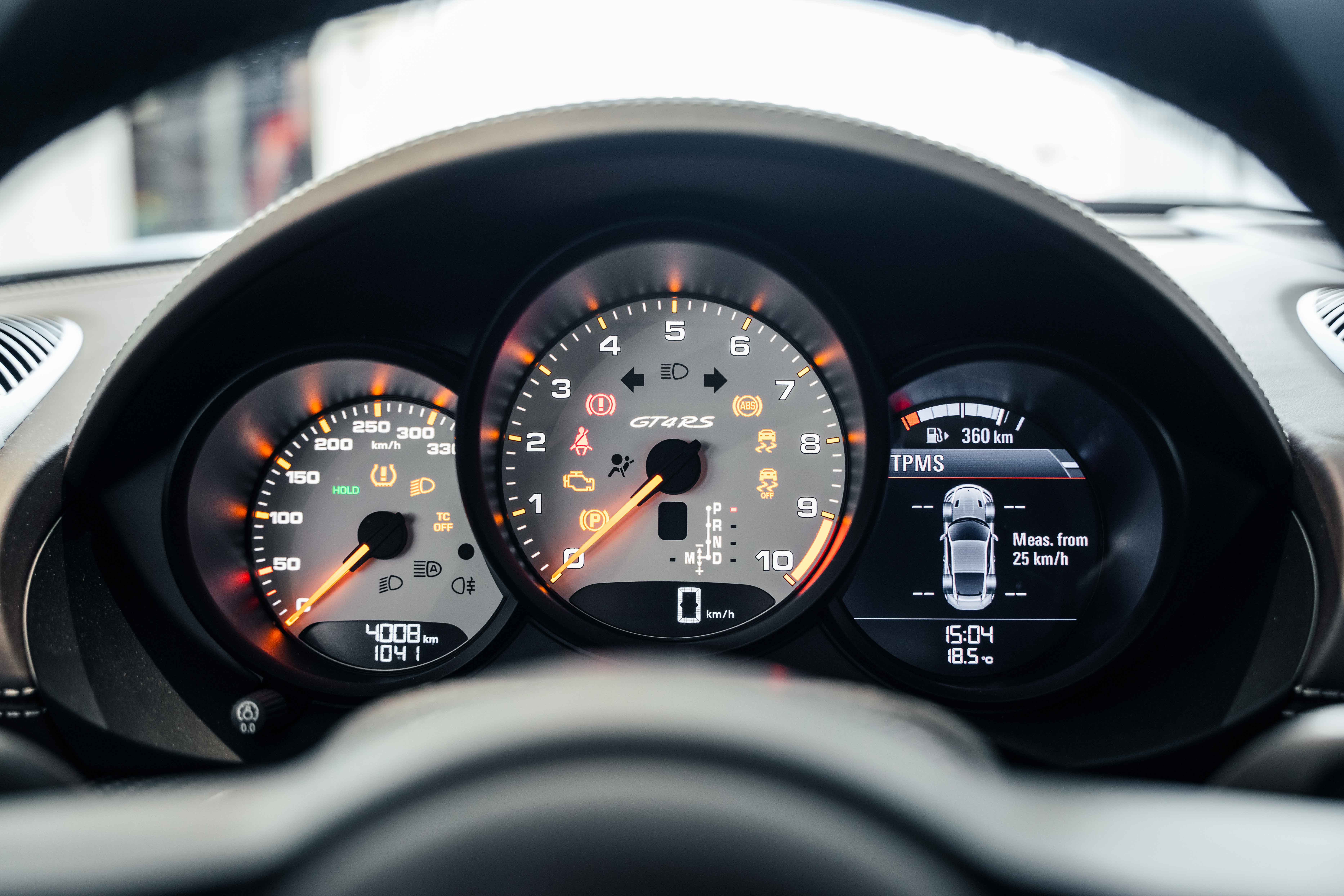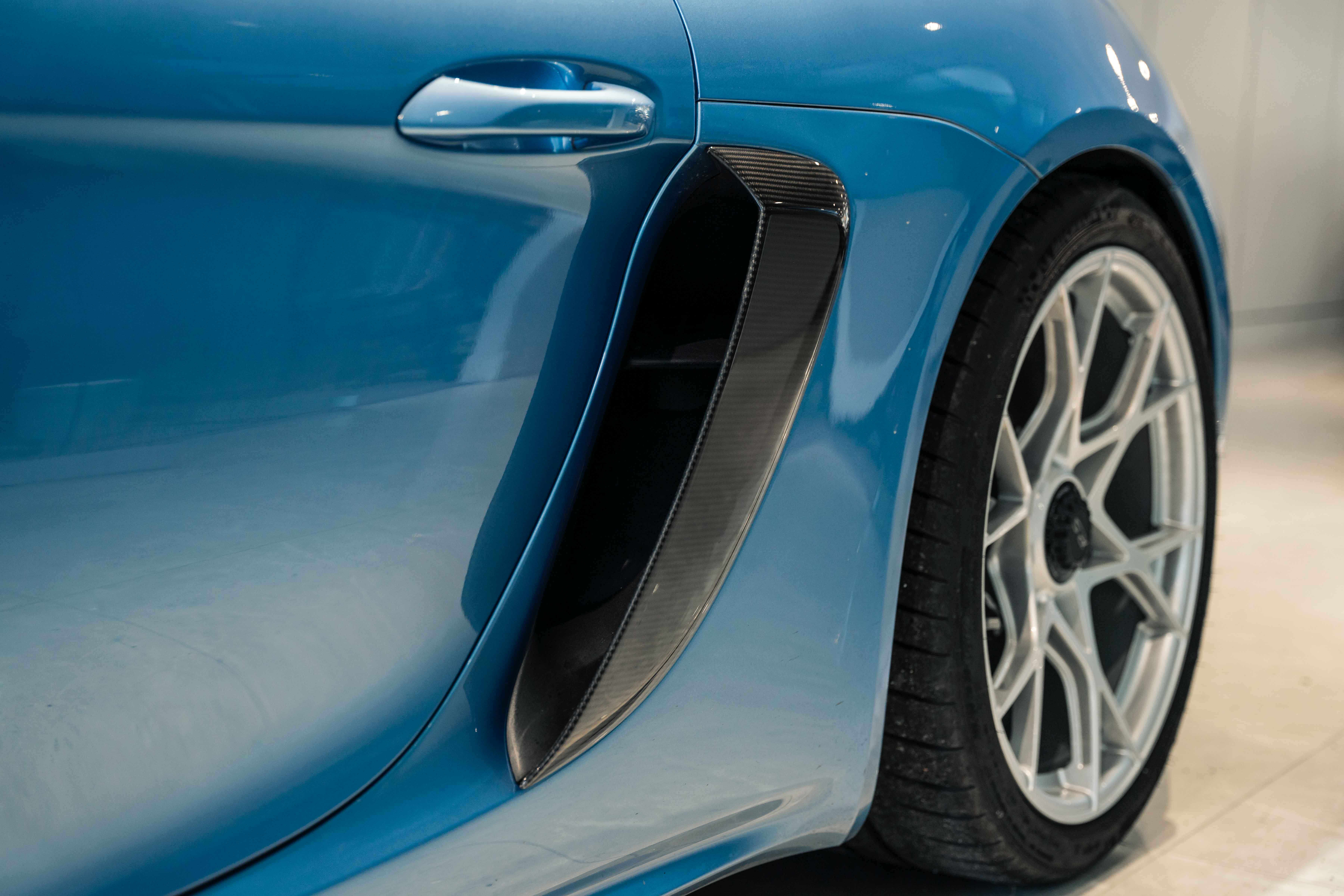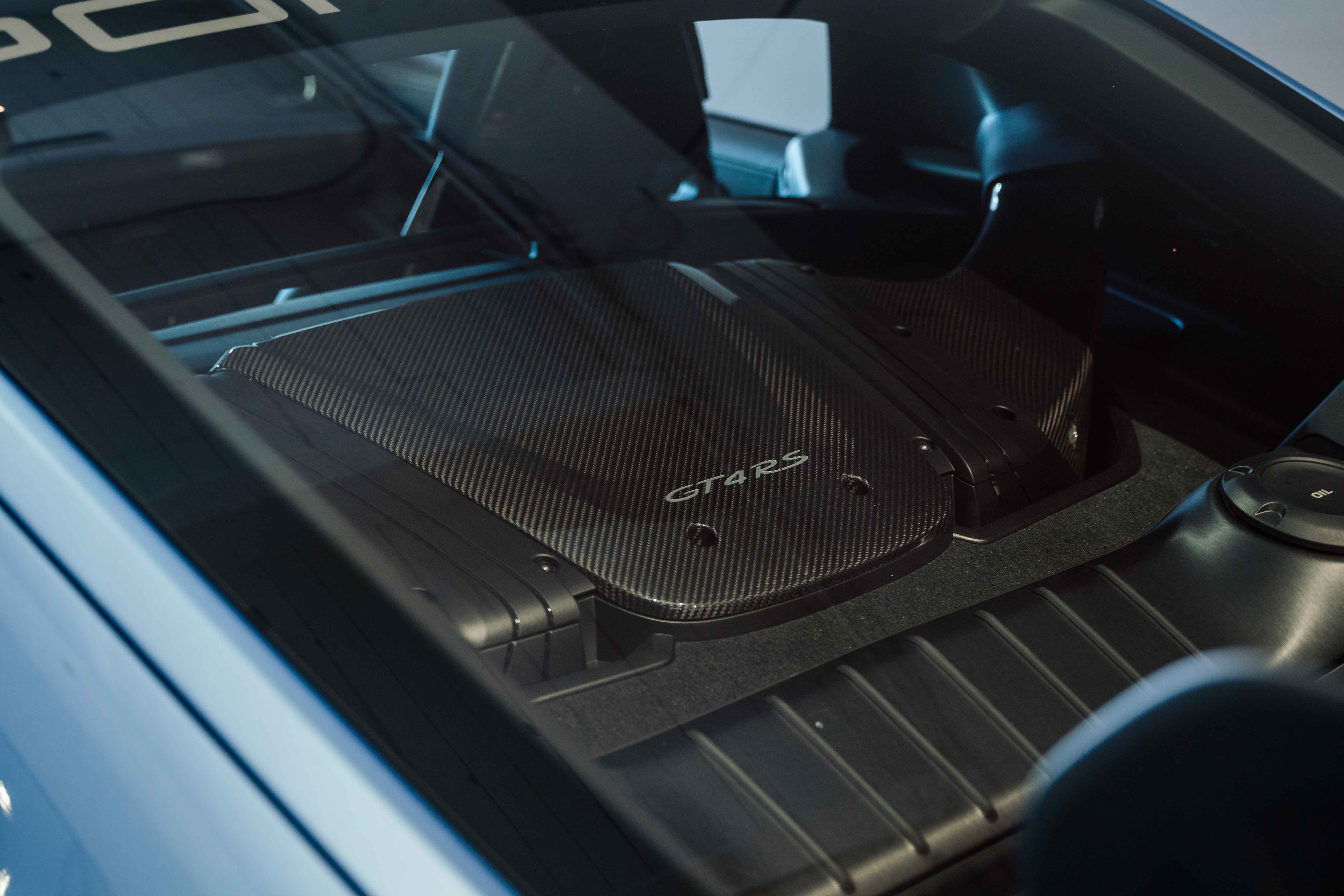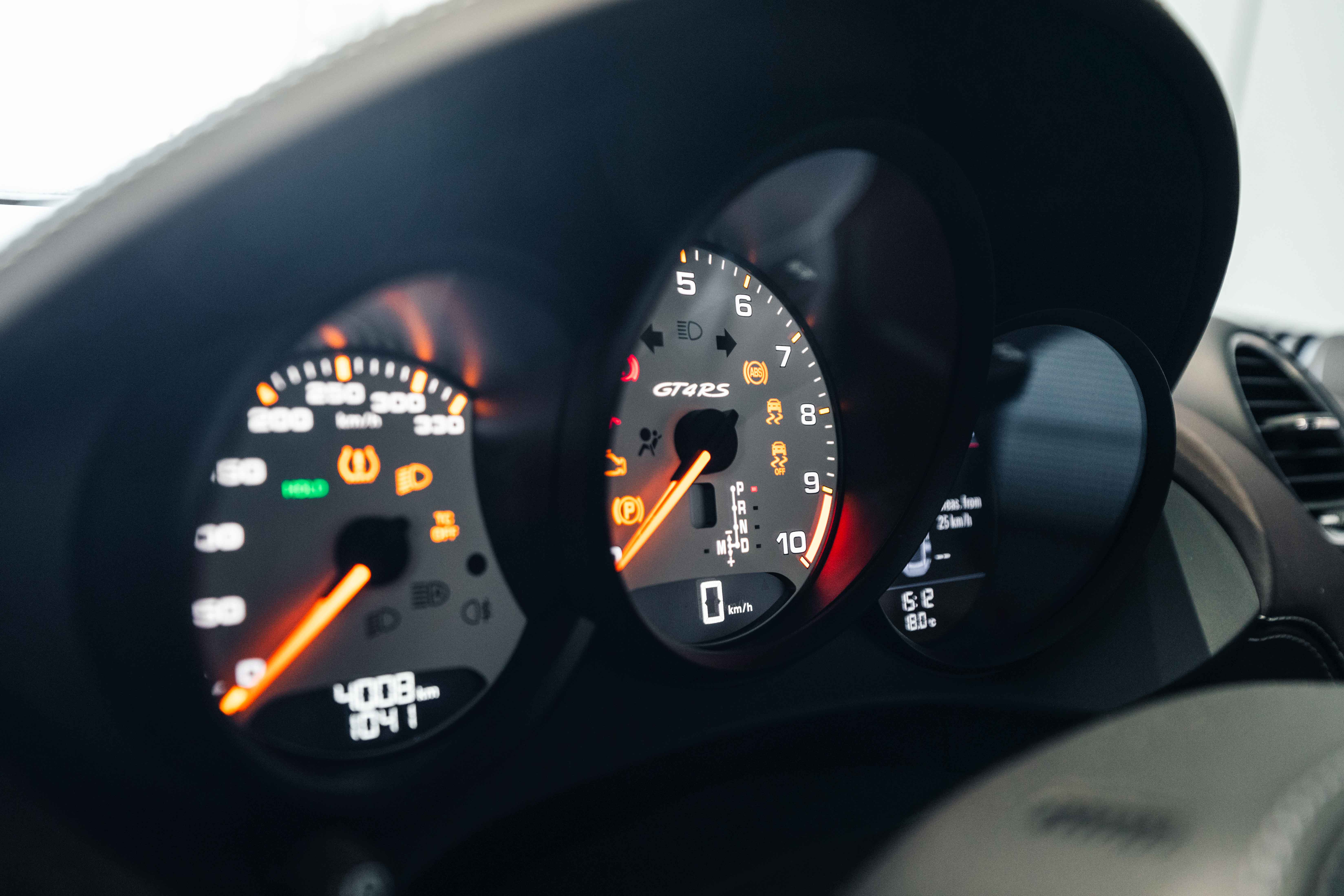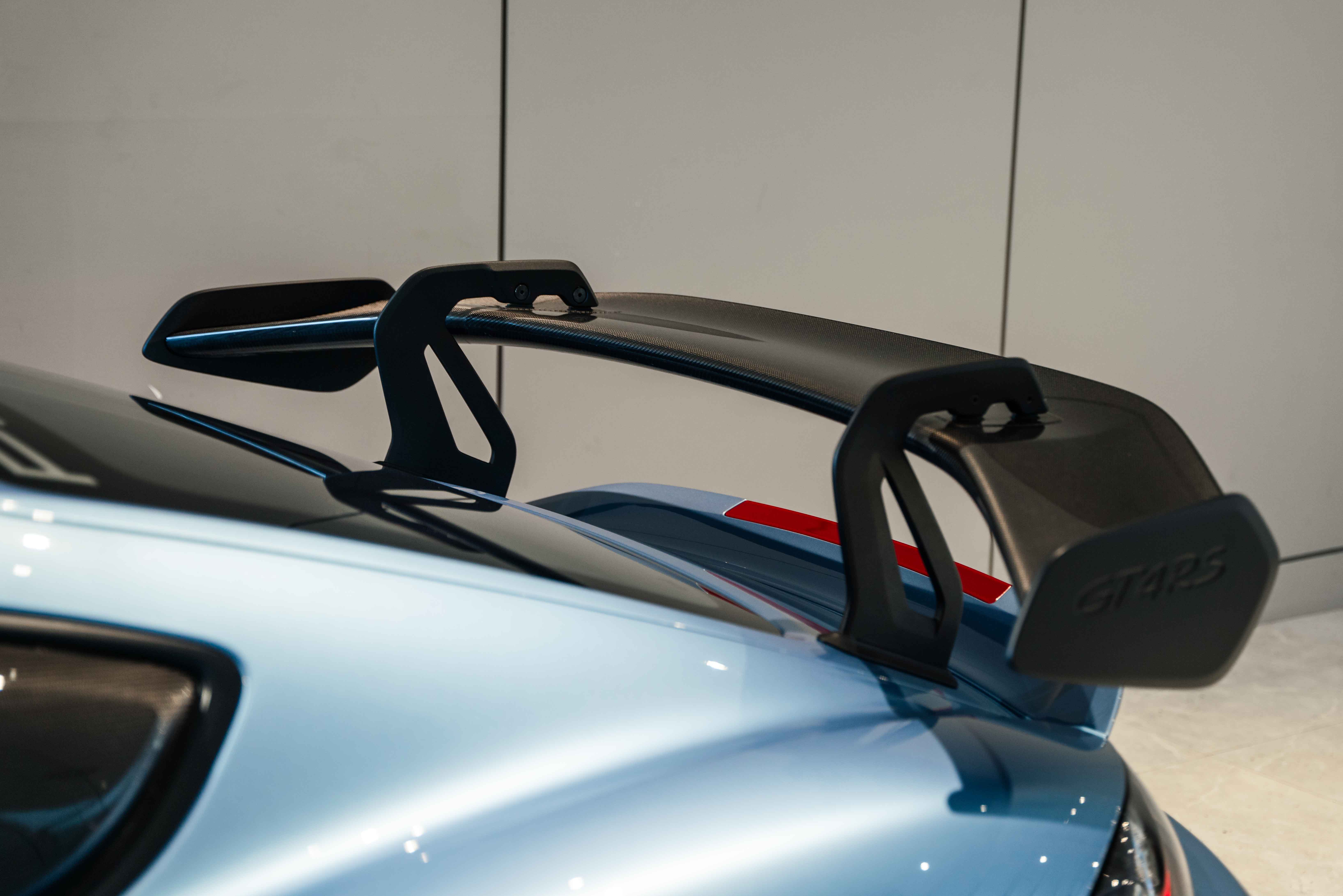 Finished in Gemini Metallic (Paint to Sample Preparation) and equipped with the Weissach Package, this GT4 RS strikes an extraordinary balance between race car aggression and timeless sophistication. Carbon fiber accents throughout — including window triangle trims, engine cover, and interior trim package — highlight its motorsport heritage. Behind the lightweight silver-painted forged wheels are Porsche Ceramic Composite Brakes (PCCB) with high-gloss black calipers, ensuring unparalleled stopping power. A front axle lift system, Chrono Package, and Light Design Package further enhance both its usability and precision on and off the circuit.