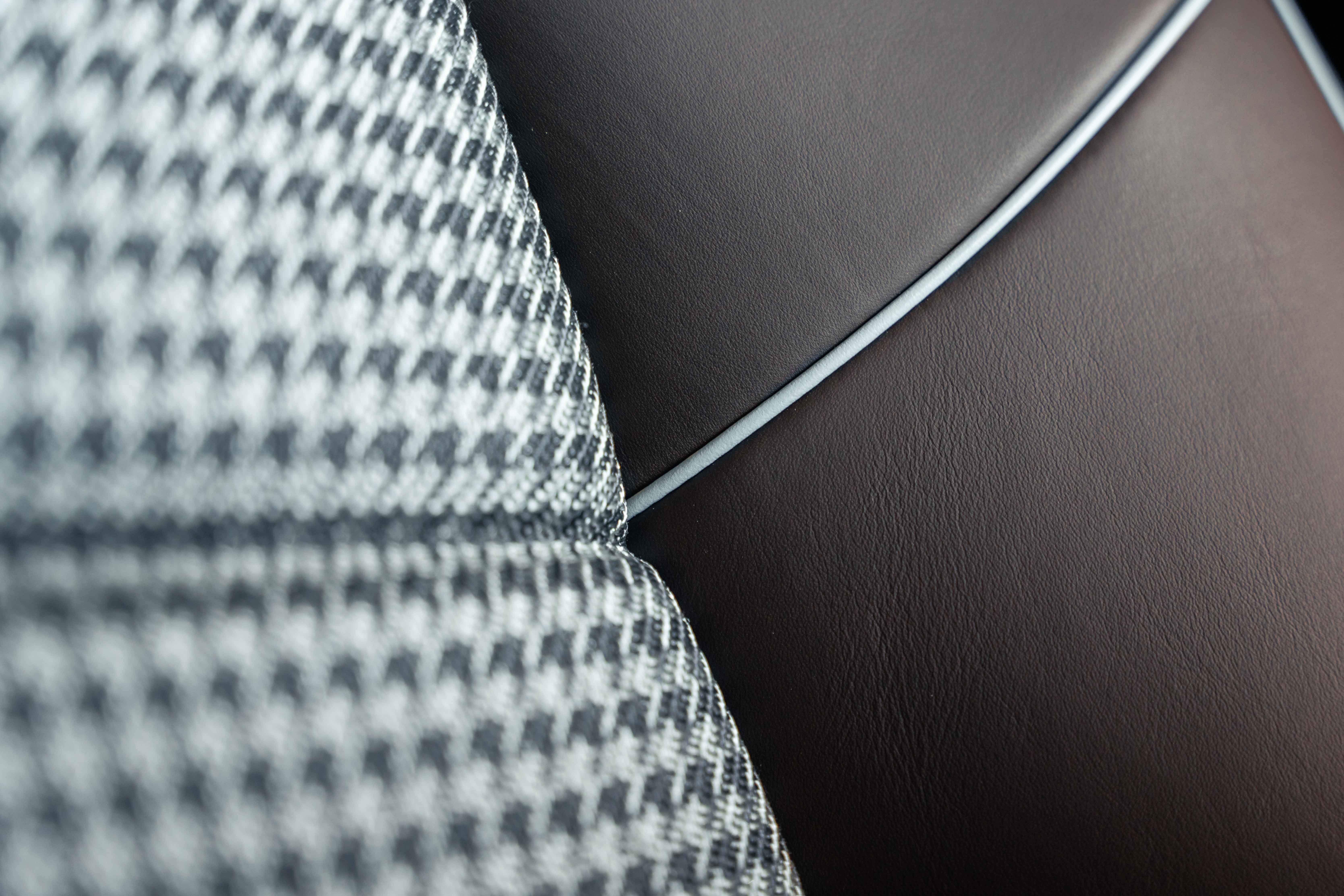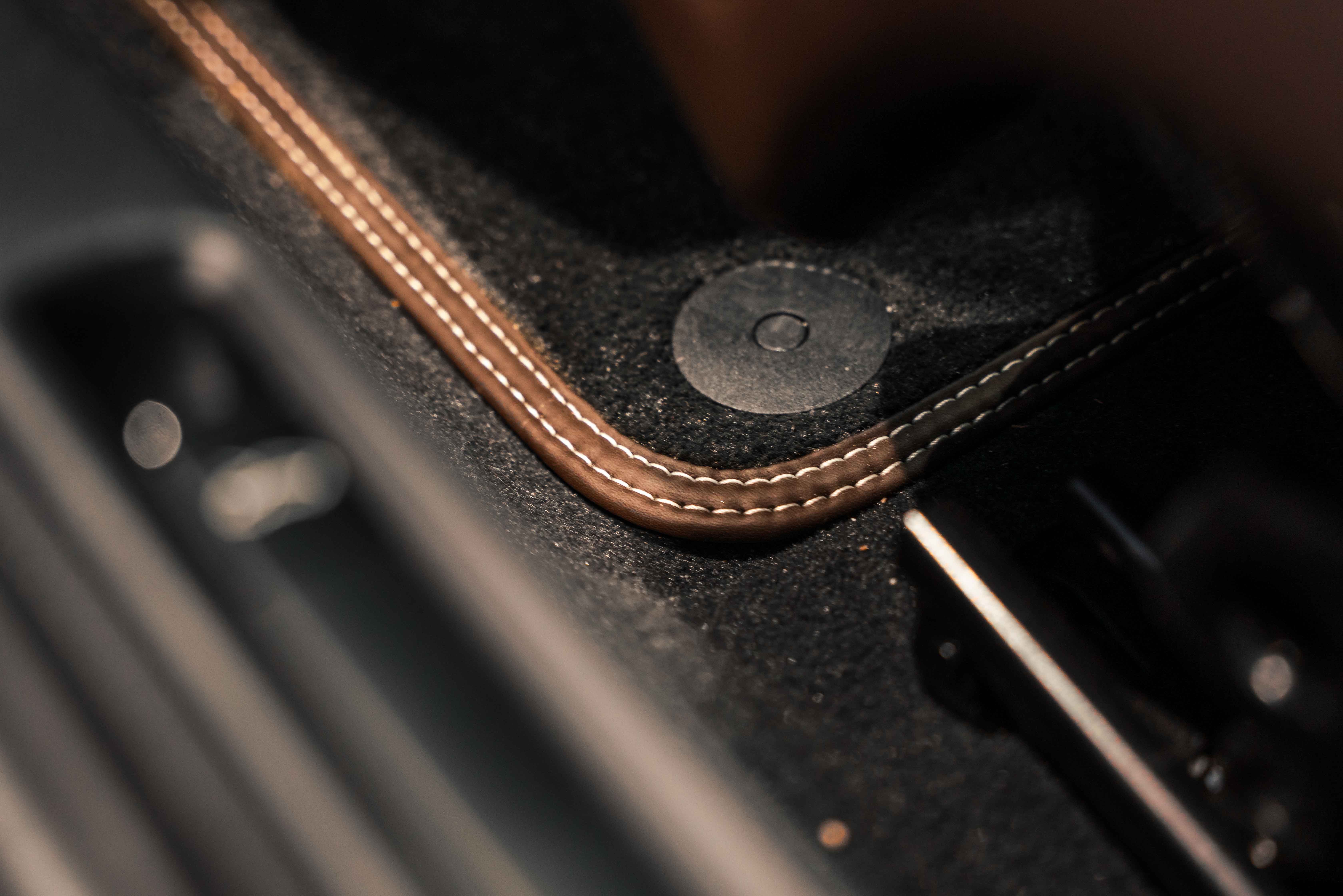 Espresso leather mid-section and grab handles with Pebble Grey stitching